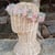 Corona de flores hortensias y paniculata preservada en blanco y rosa.